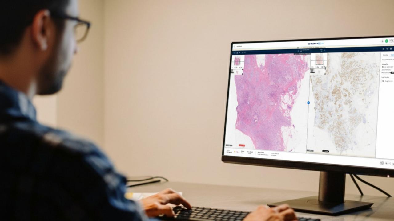 Bij digitale pathologie worden microscopische preparaten van weefsel of cellen ingescand tot scherpe digitale beelden. Pathologen kunnen deze beelden vervolgens op een computerscherm analyseren, meten en voorzien van notities. Dat maakt het mogelijk om diagnostiek flexibeler, efficiënter en met een hogere nauwkeurigheid uit te voeren.